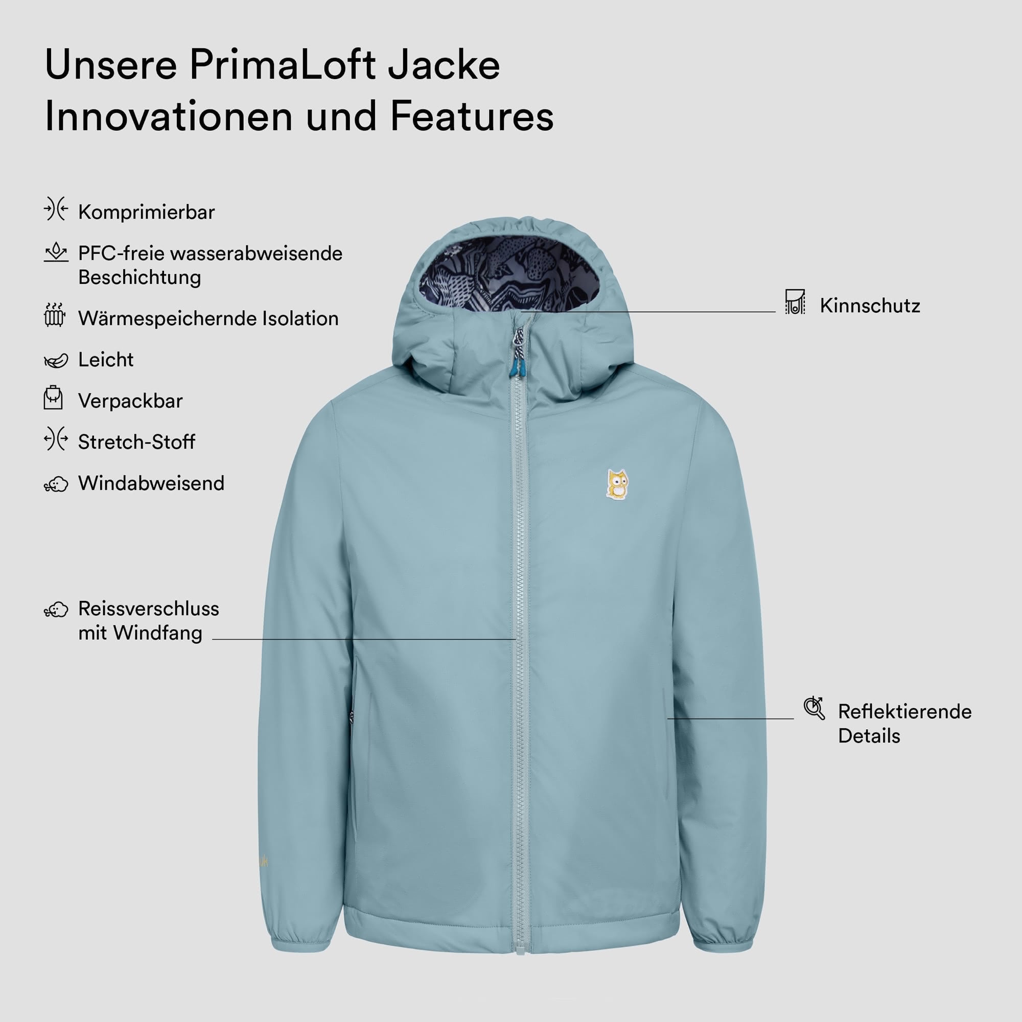 - Isolation: PrimaLoft® Gold Active (100% Polyester, 45% Post Consumer Rezyklat)